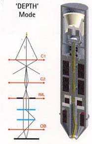 The depth of focus is inversely proportional to the angular aperture of the incident beam. In this mode, the intermediate lens works effectively as an "aperture changer" - its excitation changes will influence the beam so that the angular aperture of the incident beam can be set considerably lower than optimum. This means that the microscope does not work at the ultimate resolution, however in the range of lower and medium magnifications the difference in resolution cannot be seen. On the other hand, the difference in acquired depth of focus is clearly remarkable even at short working distances and often very useful, especially when investigating specimens with high topography.