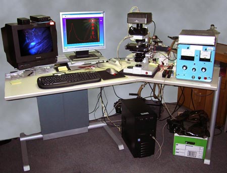 ![]() This PC based Empix Workstation provides an optical microscope test bed for low fluorescence camera testing. Our USB Fiber Optic Cathodoluminescence Spectrometer is also interfaced to the optics, providing CL spectra to document composition and changes viewed with imaging. Using a Relion vacuum chamber and electron gun, excellent, stable CL results are obtained. |